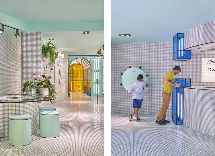 这一次,Masquespacio接到的Brief是:希望这家概念店能从设计上,将RUBIO辉煌的过去与展望的未来相融合。除此之外,客户的自由度相当高。于是,Masquespacio使用霓虹灯、有机玻璃与格纹涂料,将整家店打造得十分具有未来主义的味道。