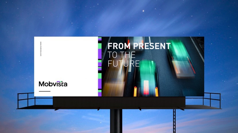 Mobvista英文标识中 i 和 t 之间的移动点与品牌主色紫色、绿色结合,形成一个独特的色条,如同一座连接西方和东方的的一座桥梁,为全球用户提供无差别的内容和服务,以技术推动商业全球化,并将之践行到为每一个市场每一个客户的服务中。