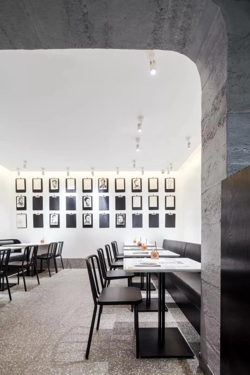 现代西餐厅的迷人之处在于精致明亮,暖白光与空间高级灰相融合使空间分层突出,重点鲜明的效果,齐整有序而又澄澈纯净。